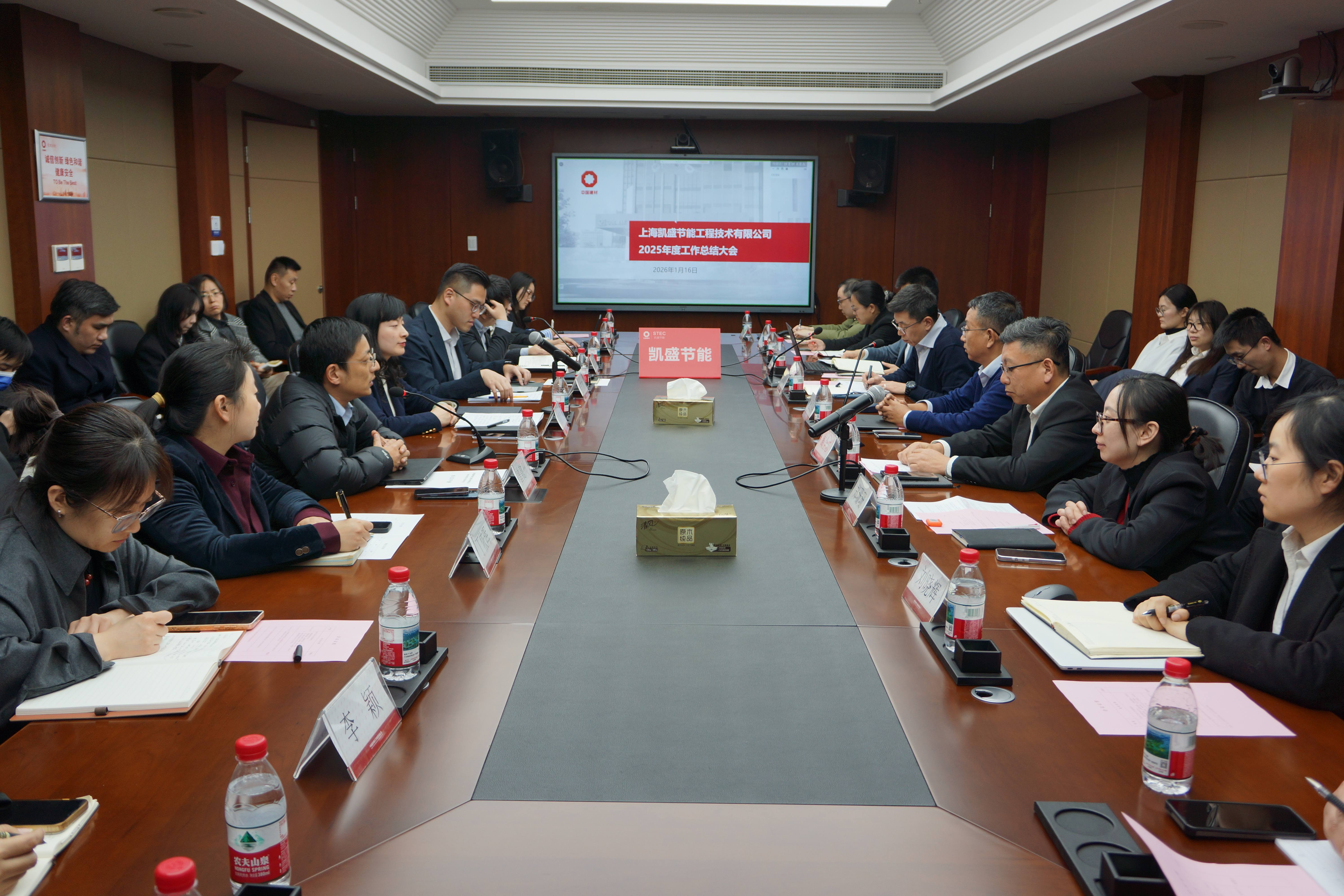 公司新闻2026年1月19日,上海凯盛节能工程技术有限公司成功召开2026年度工作会既2025年度工作总结会议。此次会议旨在全面复盘过去一年的经营成果,并对2026年核心工作进行部署。会议由公司常务副总经理曾懿州主持,并宣读了公司表彰荣誉。全体员工通过线上线下方式参加会议。